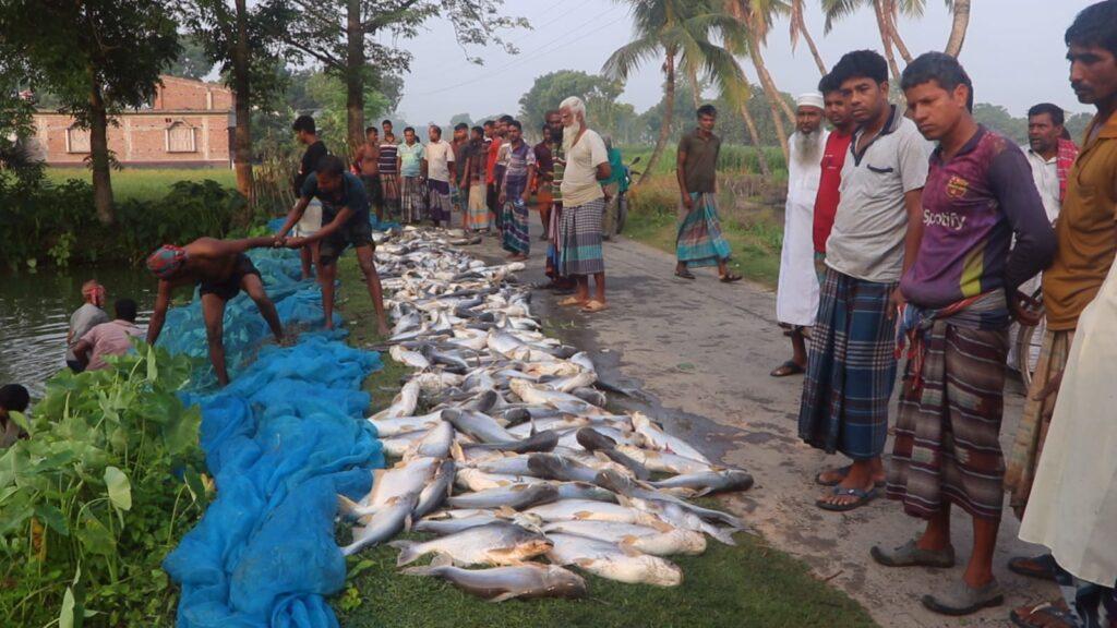 একই অবস্থা পাশাপাশি আরো দুটি পুকুরে। মোট তিনটি পুকুরে মাছ মরে ভাসতে দেখে এলাকায় তোলপডাড় শুরু হয়ে যায়। খবর পেয়ে বুধবার সকালে এলাকার শত শত মানুষ পুকুর পাড়ে এসে ঘটনার তীব্র নিন্দা জানান।
