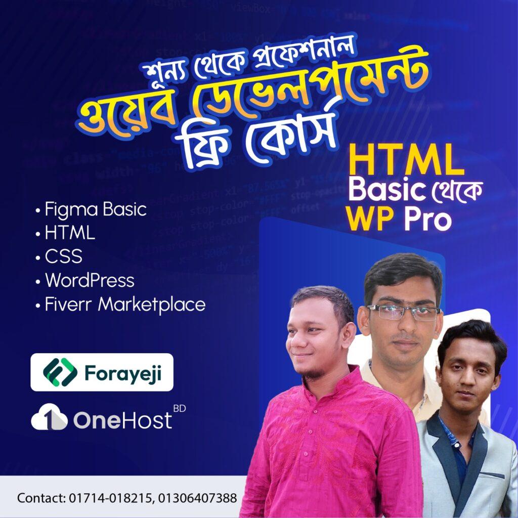 অনেকের ক্যারিয়ার থেমে যায় সিদ্ধান্তহীনতায়। এই সমস্যা সমাধানে যুগোপযোগী এক উদ্যোগ নিয়েছে OneHost BD এবং Forayeji Creative Agency। তারা যৌথভাবে আয়োজন করেছে একটি ফ্রি ফ্রিল্যান্সিং কোর্স, যেখানে অংশ নিতে পারবেন ১৬ থেকে ৩০ বছর বয়সী তরুণ-তরুণীরা।