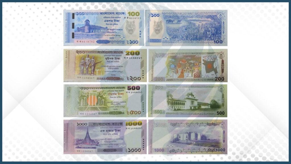 এসব নোটে দেশের গুরুত্বপূর্ণ ঐতিহাসিক, প্রাকৃতিক ও সাংস্কৃতিক প্রতীকগুলোকে বিশেষভাবে তুলে ধরা হয়েছে। সব নোটে রয়েছে নতুন গভর্নর আহসান হাবিব মনসুরের স্বাক্ষর।বাংলাদেশ ব্যাংকের সংশ্লিষ্ট বিভাগের কর্মকর্তারা জানান, দেশে আসছে নতুন ডিজাইনের টাকা। এসব টাকায় কোনো ব্যক্তির ছবি থাকছে না। এর বদলে থাকছে দেশের ঐতিহ্যবাহী স্থাপনা, প্রাকৃতিক দৃশ্য ও সাংস্কৃতিক প্রতীক।